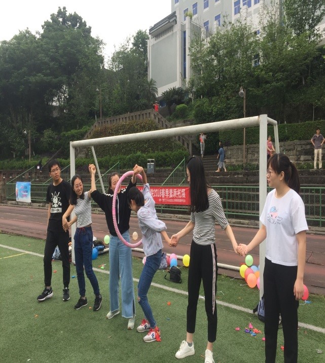 活动以游戏为切入口,让同学们充分参与其中。从参与游戏,学会游戏,快乐游戏,队员们全情投入。在考验合作能力的“保卫气球大作战”中,哨声一响,各组队员纷纷寻找规律、商量对策、协调配合,为保卫本组气球建言献策;在“传递呼啦圈和七手八脚”环节,各位队员旋转跳跃,灵活传递着呼啦圈,对裁判要求摆出的姿势,队员高呼:“只有你想不到,没有我们做不到”!最后阶段的拔河比赛将活动推向了高潮,每个同学都积极参与,有的帮忙排兵布阵、有的提供拔河技巧、有的加油助威,最后活动在激烈的拔河比赛中落下了帷幕。