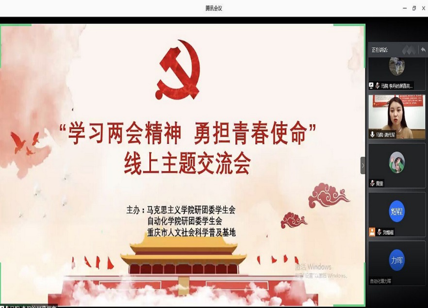 和自动化学院联合举办了“学习两会精神 勇担青春使命”的线上主题交流会。本次交流会在腾讯会议开展,两院共100余名研究生同学参与。会议由视频裸聊
