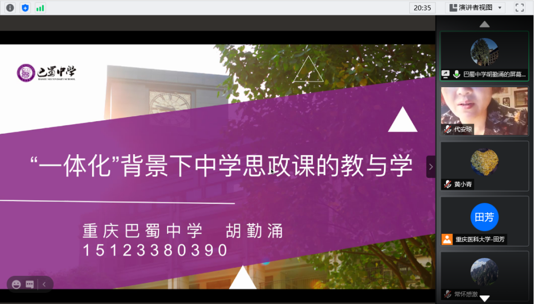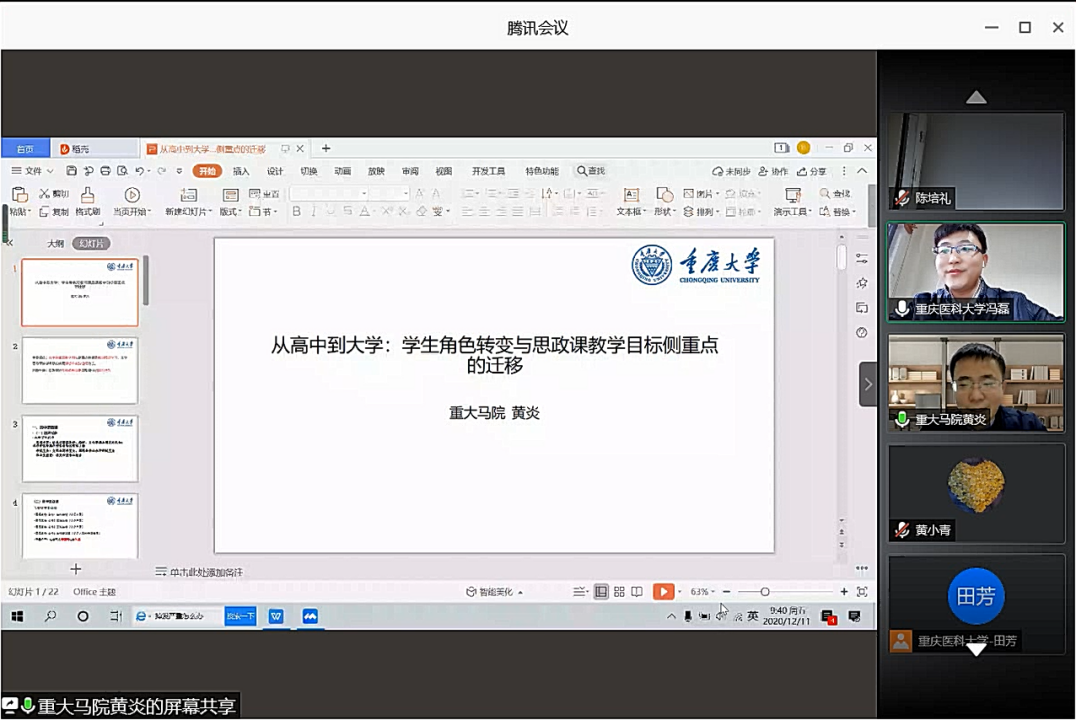 2020.12.11日上午,重庆市高校思想政治理论课手拉手行动(第一组)大中小学“手拉手”同备一堂思政课研讨会在“腾讯会议”上成功举办。此次研讨会由重庆医科大学视频裸聊