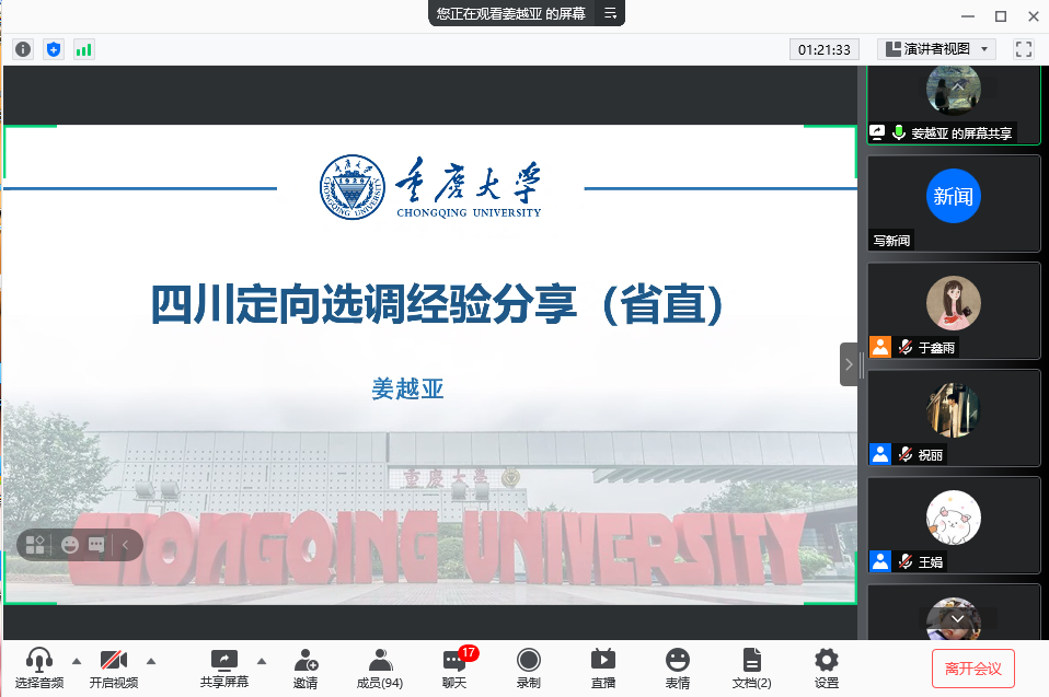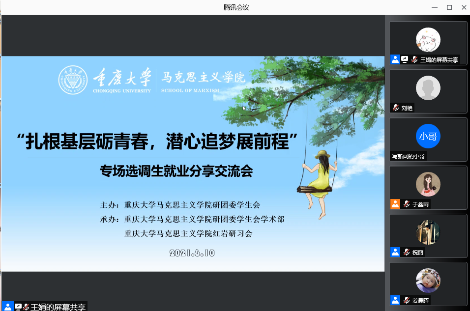 在“腾讯会议”上举行了以“扎根基层砺青春、潜心追梦展前程”为主题的选调生经验分享交流会。本次交流会特邀视频裸聊