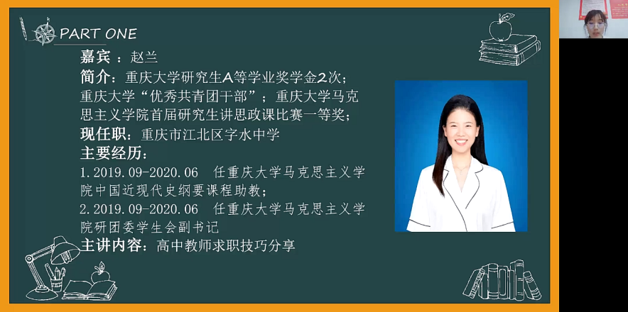 在“腾讯会议”上举行了教师岗求职经验在线分享会。本次交流会邀请了学院成功考上教师岗位的的赵兰、杨娜、曹宇宁、张雪伟4位2021届毕业研究生进行经验分享。