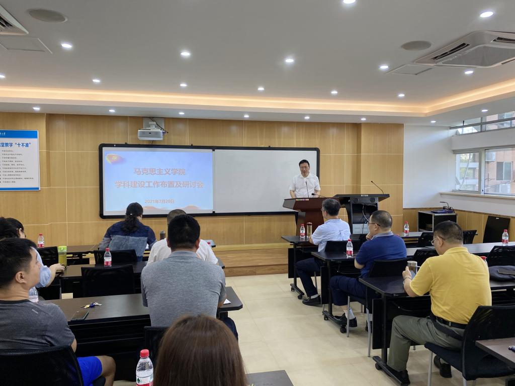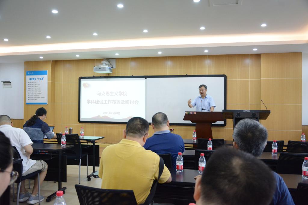 张邦辉首先通报了近期学院申报马克思主义理论一级学科博士点相关工作,他表示,7月12日,学校学位委员会通过了马克思主义理论一级学科博士点的汇报工作,这表明学院博士点的申报工作取得巨大突破。他指出,学院各学科方向要整合资源,凝练方向,坚持以学科建设为龙头,统领学院的科研、教学与人才培养工作;坚持人才强院战略,优化人才队伍结构,构建优秀学术团队;不断优化组织机构,整合资源,搭建学院发展平台,促进学院在新的历史时期实现跨越式发展。