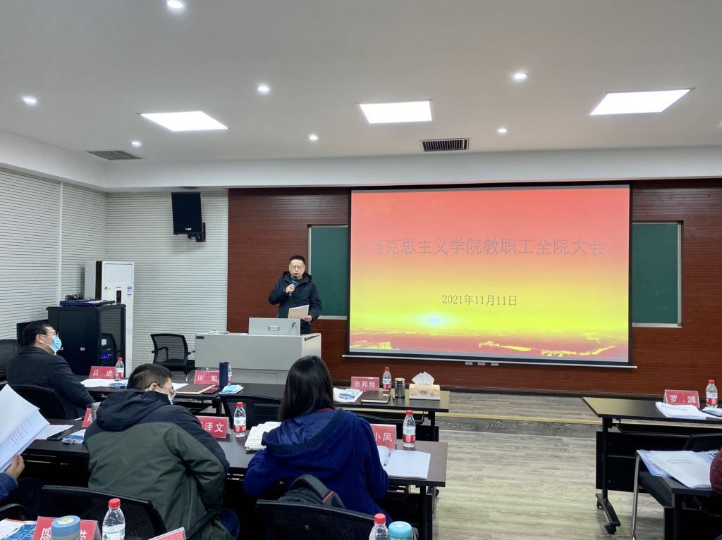 在406教室召开2021年度第八次全院教职工大会,学院领导班子、全院教职工参加会议。