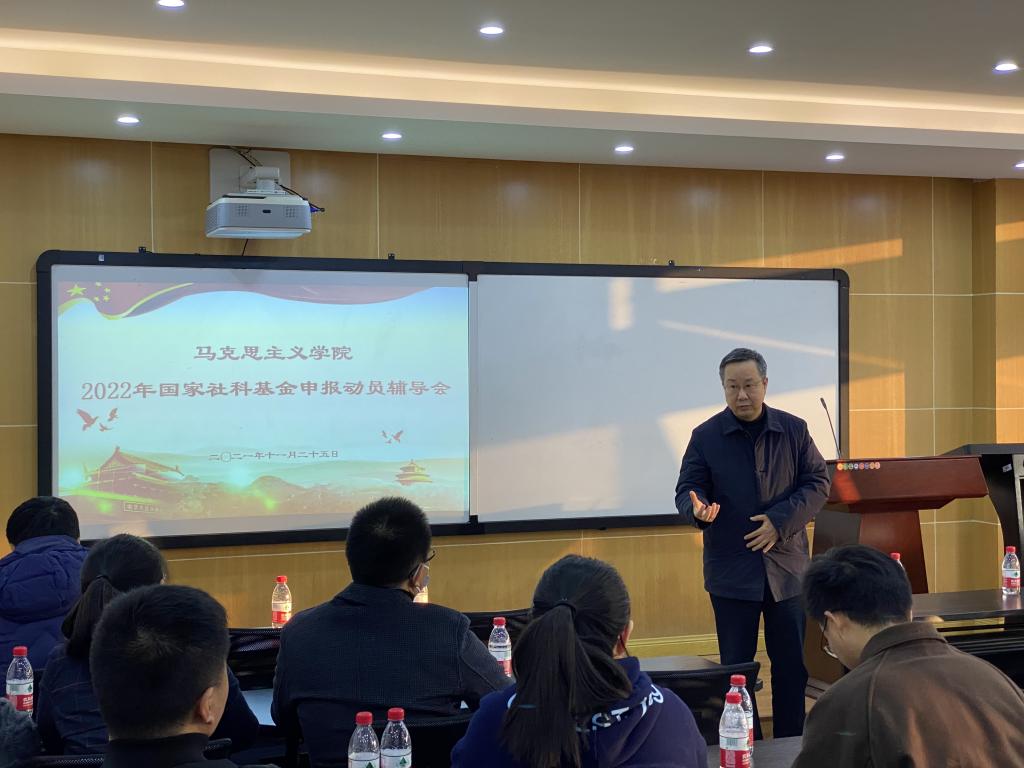 张邦辉院长首先讲话。他表示,学院高度重视国家项目申报工作,目前已全面启动2022年项目申报动员指导,全力为申报教师做好服务。通过本次指导会,希望能够促使教师们做好项目申报,增强科研意识,提升研究能力,为个人长远进步及学院持续发展打下基础。他指出,切实做好2022年度国家社科基金申报工作,是当前学院科研工作的重中之重,需要与会教师们的共同努力,实现国家社科基金有大作为的目标。