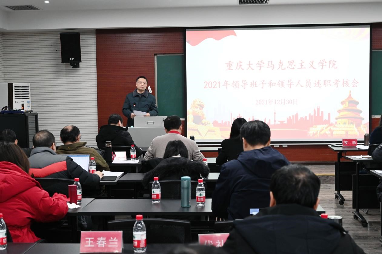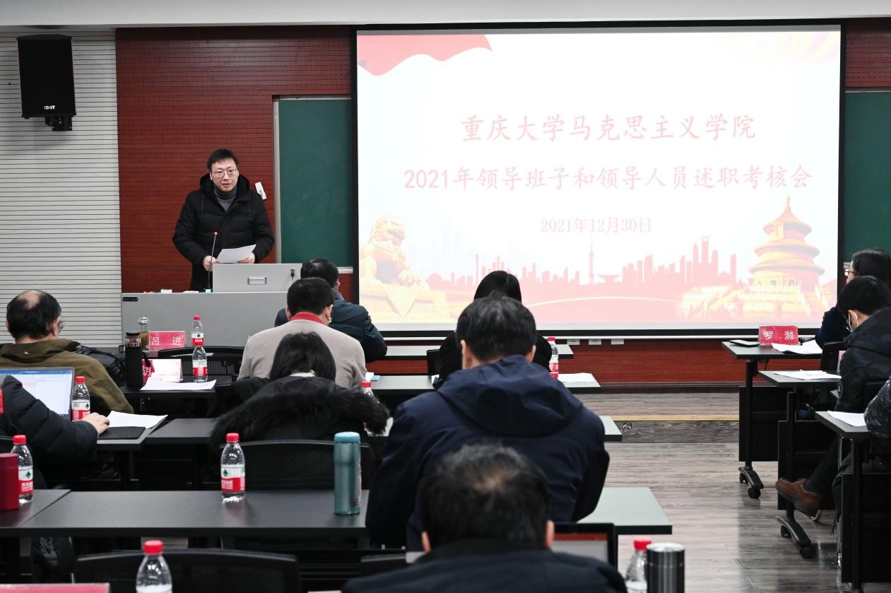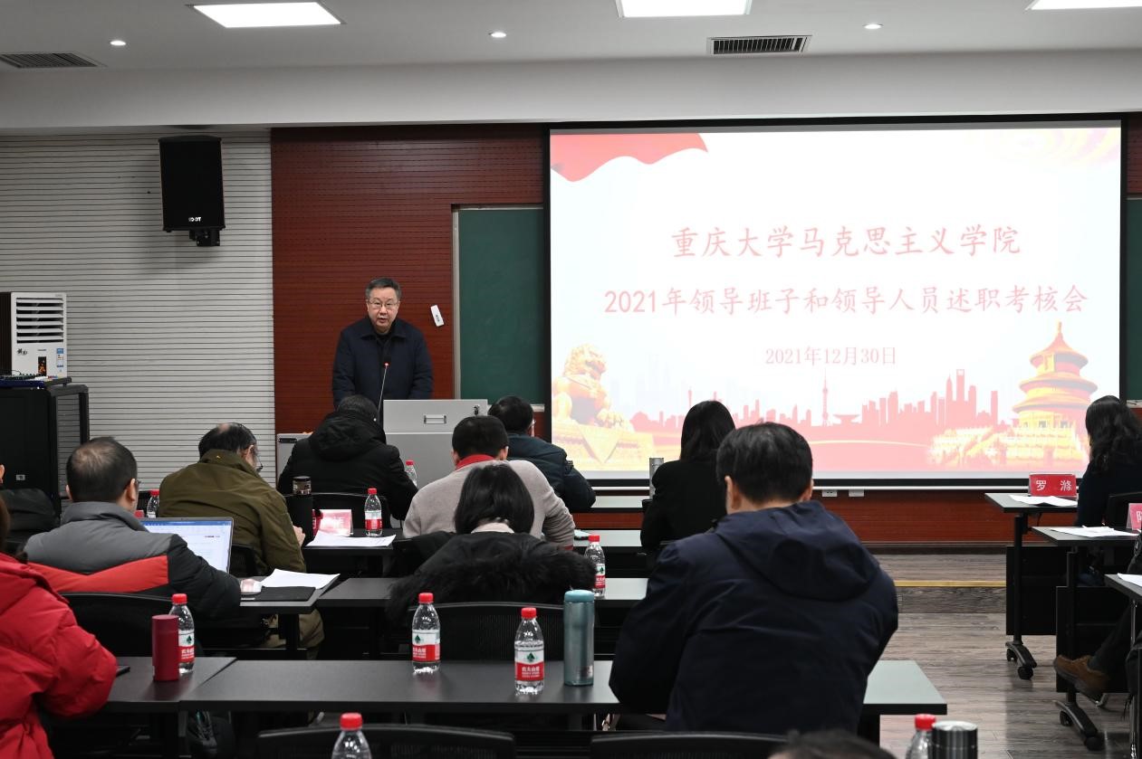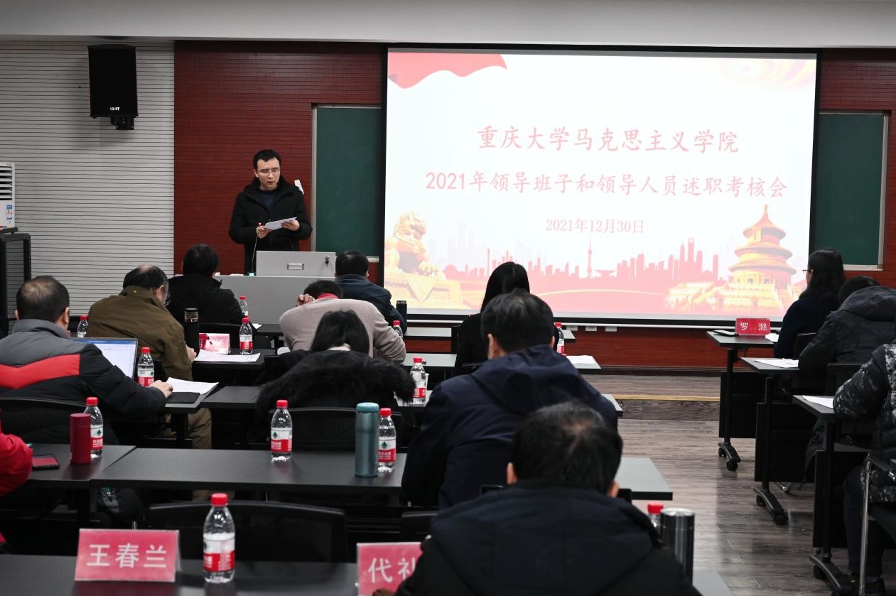 于学院406教室举行2021年领导班子和领导人员述职考核会,党委宣传部副部长徐方正、党委组织部组织工作室副主任杨乾龙、视频裸聊