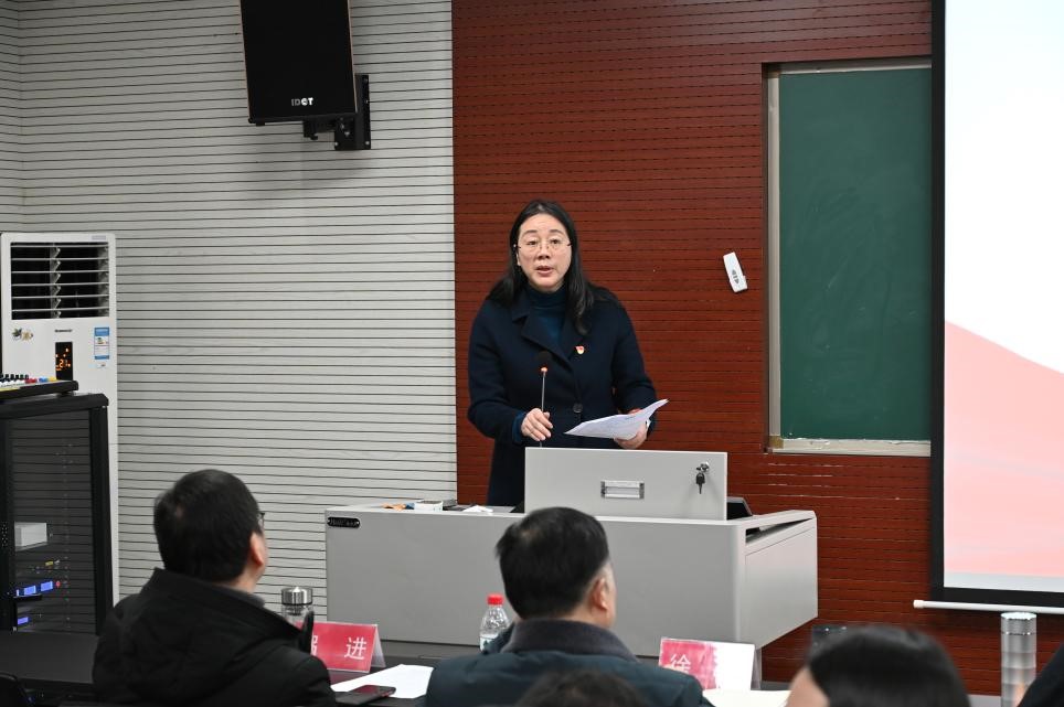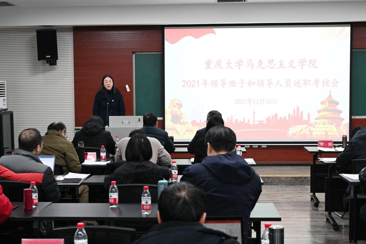 党委书记罗滌首先代表学院领导班子进行述职。罗书记在述职中表示,一年来学院强化党建引领,促进学院发展,积极开展巡视巡察工作,积极进行党史学习教育活动,学院思想政治工作取得新成效,基层党建工作取得新进展,学科建设取得重大突破,教学质量稳步提升。罗书记表示,学院在2021年里取得的成绩离不开全院师生的辛勤努力,离不开各岗位教职工的辛勤努力,她表示在新的一年里,马院全体师生仍要秉承艰苦奋斗作风,凝神聚力,奋力前行,推动学院更好发展。