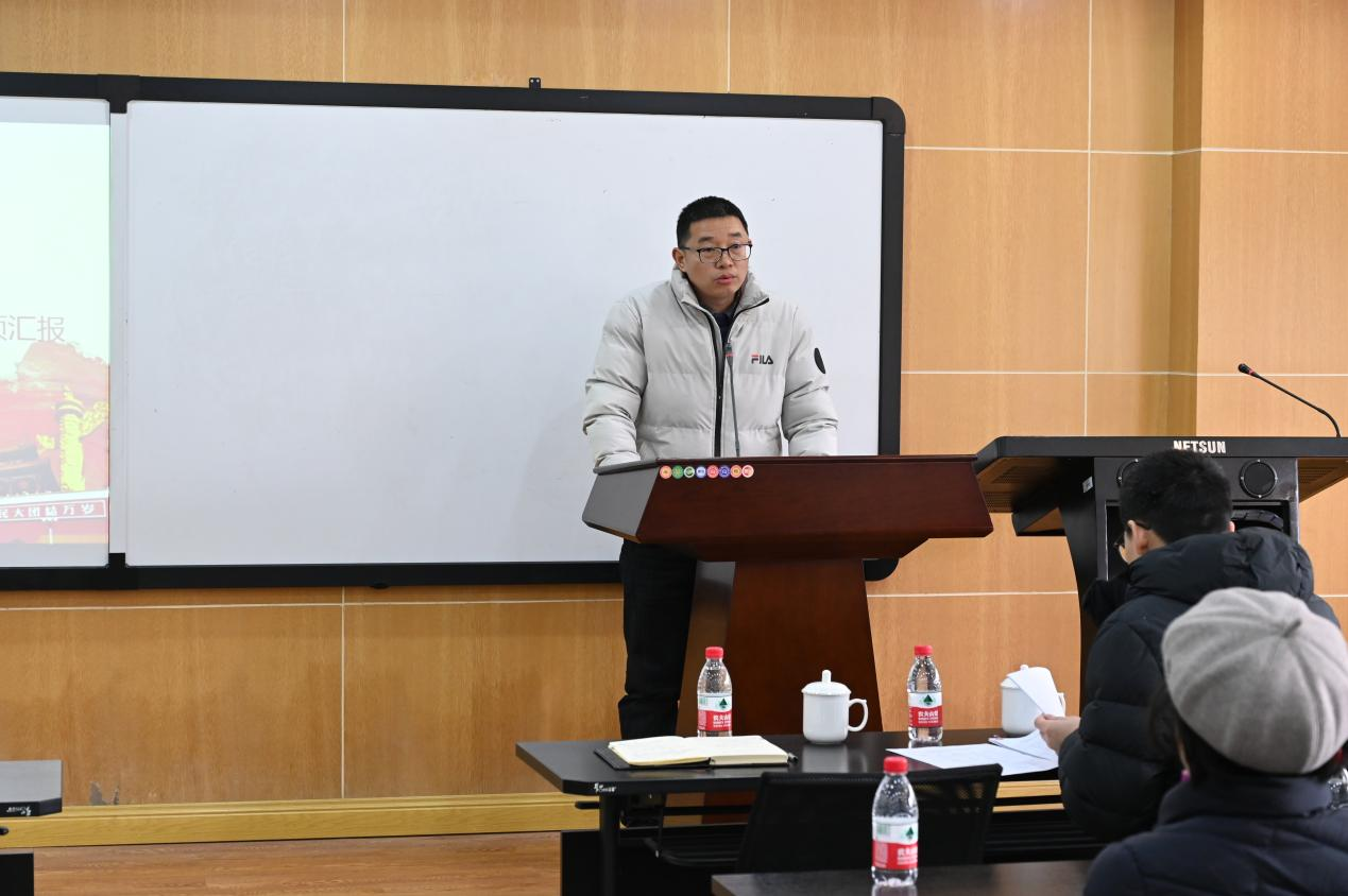 会上,与会人员首先集体观看了中国近现代史纲要教研室教师党支部的建设成果展示视频,见证了长期以来支部建设工作取得的显著成效。随后,中国近现代史纲要教研室教师党支部书记卢旭东围绕“三创三融”就党支部建设的基本情况、主要举措、主要成绩三方面进行了详细的汇报,并提出“机制创新”为先、“组织建构”为要、“队伍打造”为重、“资源汇聚”为基四条重要举措。他强调,全体党员同志要积极探索构建“学、研、讲、宣”相结合的政治理论学习新模式,切实发挥支部党员加强理论学习研究、宣传的积极性、主动性和创造性。