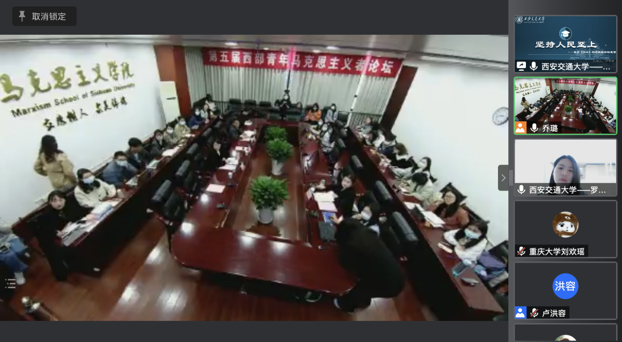 为深入学习贯彻党的十九届六中全会精神,进一步促进西部高校马院学子之间的交流,2022年4月15日,我院研团委学生会受邀参加四川大学视频裸聊