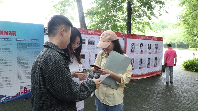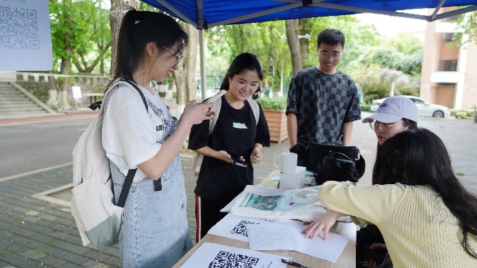 知识竞赛与主题展览同时展开,竞赛内容围绕百年团史、“七一”重要讲话精神、党的十九届六中全会精神等五大主题,既注重史实又结合时政,吸引了美视电影学院、通信学院、机械学院等学院的上百名同学参加,在工作人员的引导和介绍下,通过扫描活动二维码参与答题,并根据答题分数赢得了丰富的奖品。在答题过程中,许多同学不禁感叹“在近代一百年的历程中,我国发生了如此翻天覆地的变化,生于和平年代的我更应该为实现中华民族伟大复兴贡献自己的一份力量。”