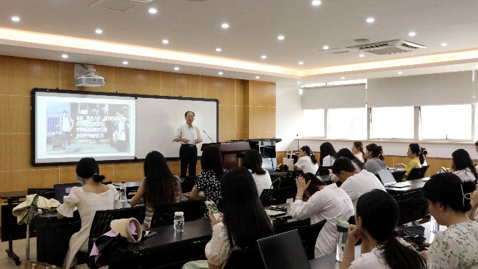 肖铁岩从新时代具有什么样的新特征入题,他讲到,新时代是网络时代,网络与我们每个人都息息相关,在新时代实现新发展一定要抓住网络这一关键点;接下来,肖铁岩通过一系列的故事带领毕业生党员回顾了建国七十余年来的昨日今朝。一是通过五十年前的开学行囊和如今新生报到的行囊做对比,从行囊看时代变化,新一代学子呈现出的诸多新特征中个性化是这一代青年学子的最主要特征;二是通过图片、视频等形式向同学们展示了视频裸聊