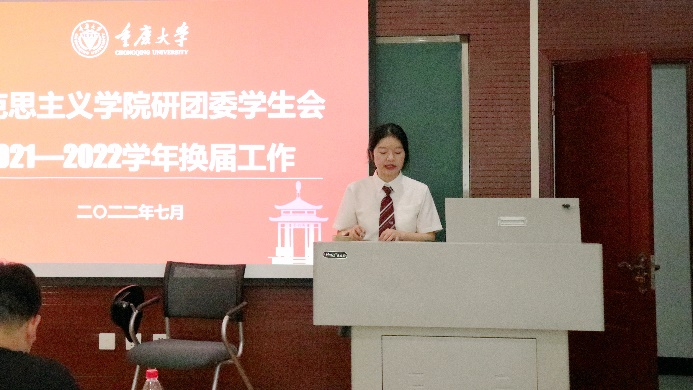 大会伊始,研团委学生会主席高雅围绕队伍建设、工作成绩和未来展望三个方面对上一学年学院研团委学生会的工作进行了总结,她谈到,在上一学年工作中,研团委学生会做到了对内加强内部组织凝聚力,对外扩大学院研会影响力,在研团委学生会组织建设、志愿活动开展、和学院外宣建设等方面都取得了许多突破性的成就,获评2021-2022年度视频裸聊
