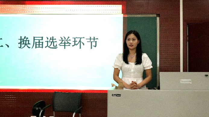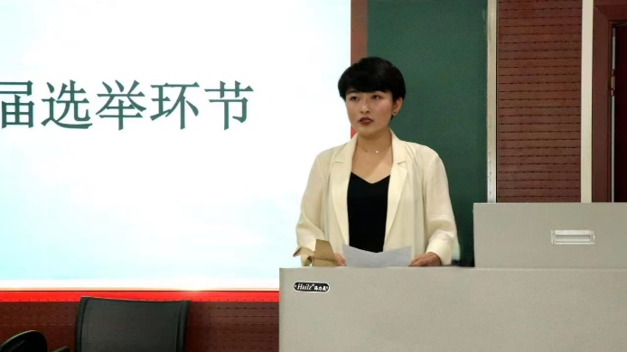 接下来,大会进行换届选举环节。任琳、王雪婷等十三位候选人分别上台进行竞选演讲。演讲完毕后,通过匿名投票的方式,最终选举出任琳、何静、白静、杨陇华、王雪婷、董瑞祺六位同学成为新一届书记团、主席团成员;选拔出李久贤、吴宝倩、刘小晶、张晓宇、沈秀琴、杨小莉六位同学成为新一届部门成员。