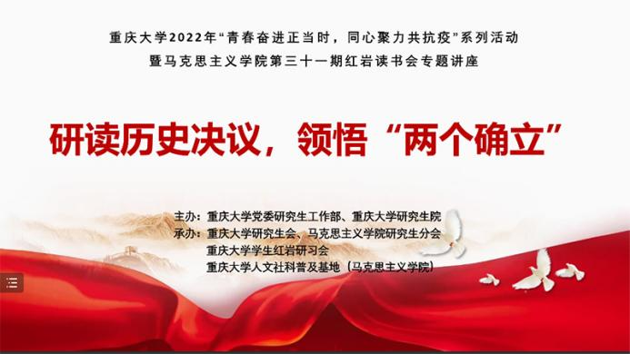 第三十一期红岩读书会专题讲座在“腾讯会议”平台顺利举办,本次读书会主题为“研读历史决议,领悟‘两个确立’”。