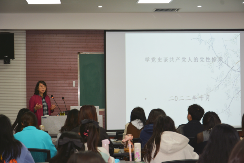 党委书记罗滌为2022级新生党员讲了题为“学党史谈共产党人的党性修养”的党课,学院2022级全体党员、入党积极分子和入党申请人共40余人聆听了本次党课。