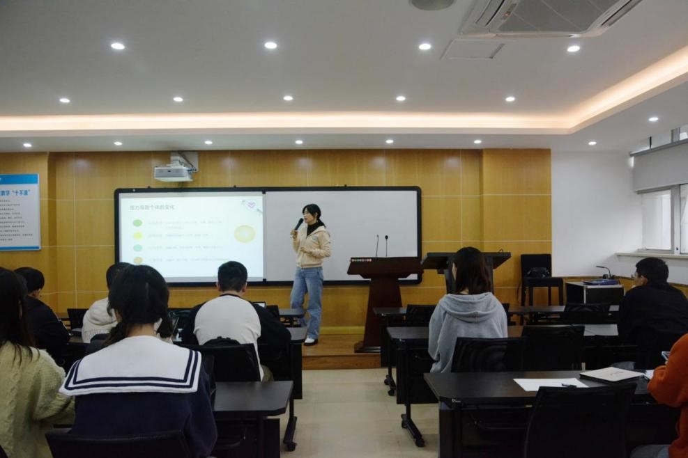 重庆市精神卫生中心“精卫鸟”志愿者服务队的专家艾立英在学院412教室对学院部分研究生进行了“给心灵沐浴 让青春飞扬”专题心理辅导讲座。讲座结束后,专家们同参会学生开展了艺术疗愈体验活动,通过绘画的方式进行心理分析,解疑释惑。