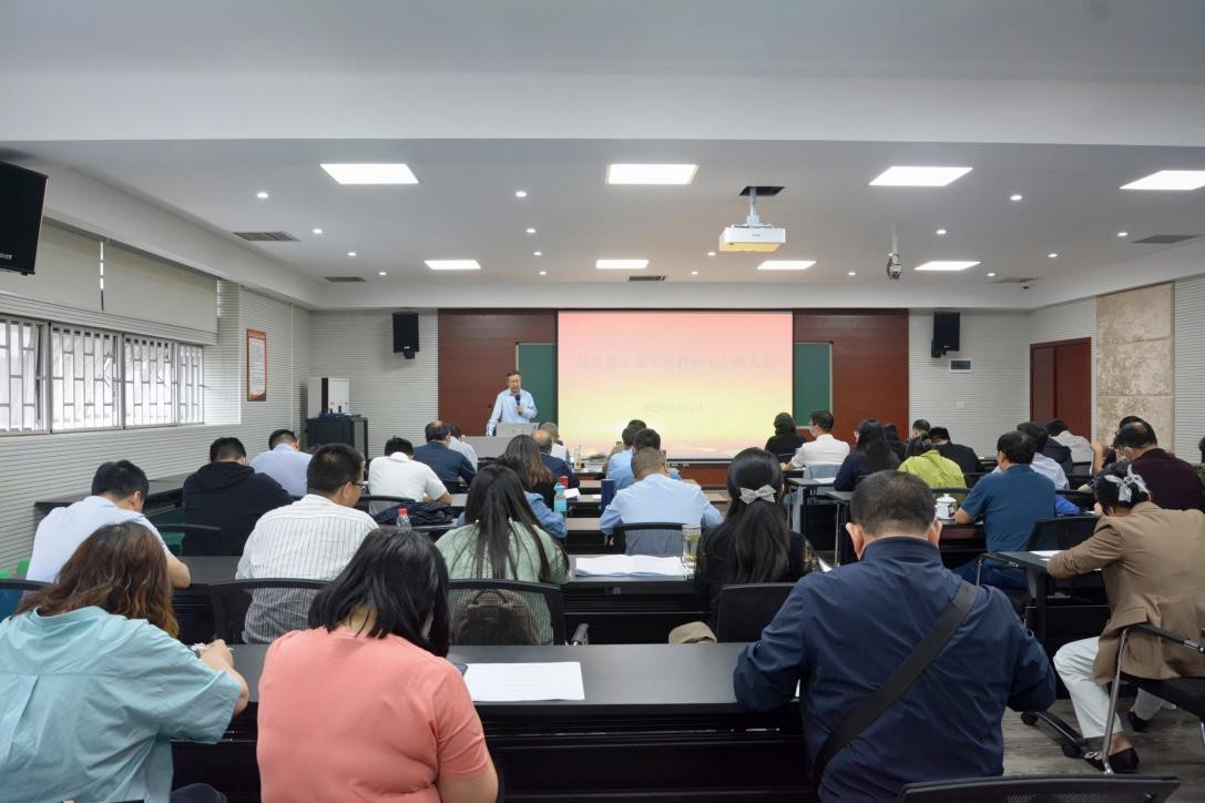 张邦辉院长通报了学院近期主要的工作情况、学院牵头的学术会议等组织情况,强调马院教师要提高政治素养、理论素养,在授课、对外宣讲过程中要严格遵守教学规则规范用语。他提醒大家关注群里面发的理论动态文章,提高教学科研能力,通报了近期人才引进相关情况、本科招生宣传、保密工作、教师暑期研修等相关事项,要求各位老师再接再厉,做好教学科研工作。